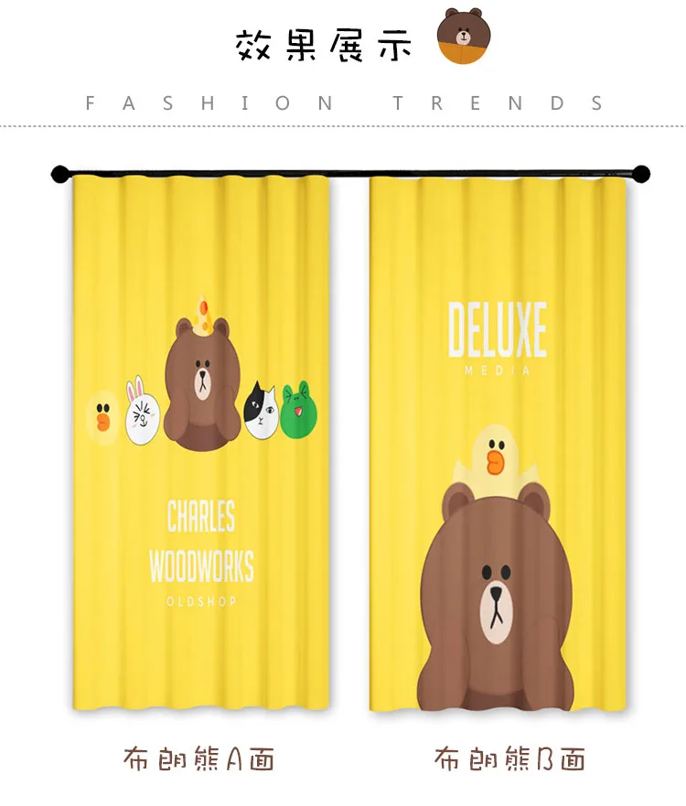 Детская комната занавеска для мальчиков и девочек мультфильм спальня медведь желтый длинный занавес s для спальни гостиной