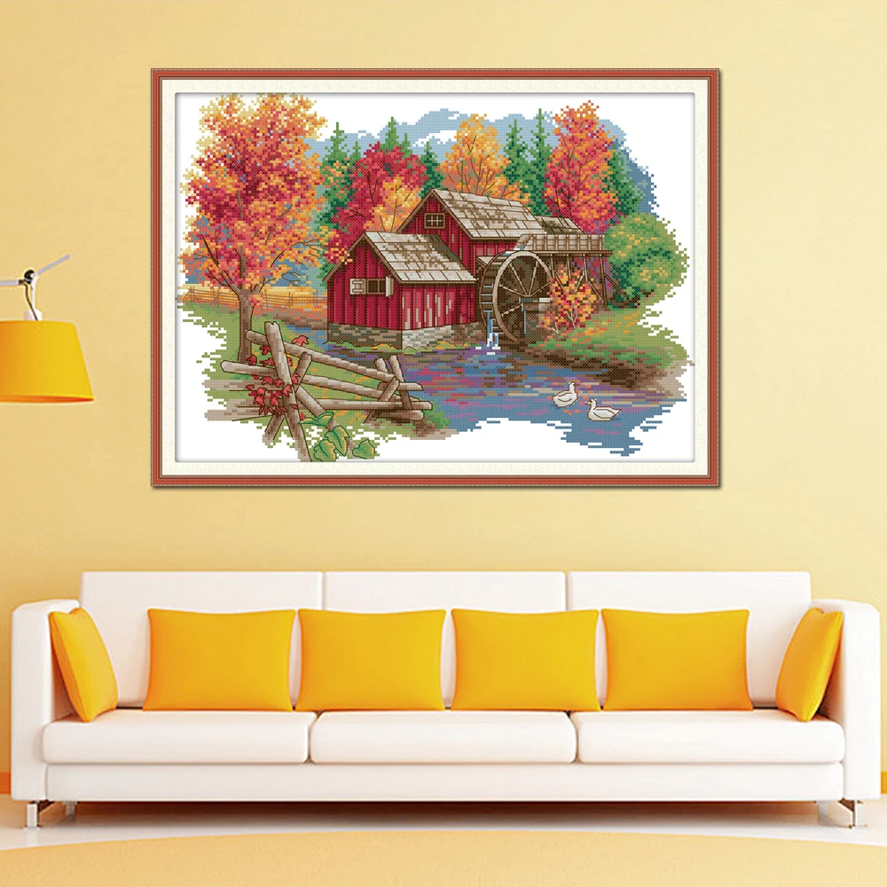Joy Sunday Mill Home Cross Stitch FA007 14CT 11CT Counted and Stamped Mill Home Decoration Embroidery DIY Cross Stitch Kits