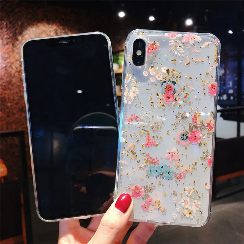 Особенности: 1. Блестящий чехол из золотой фольги с цветами, мягкий силиконовый чехол-накладка