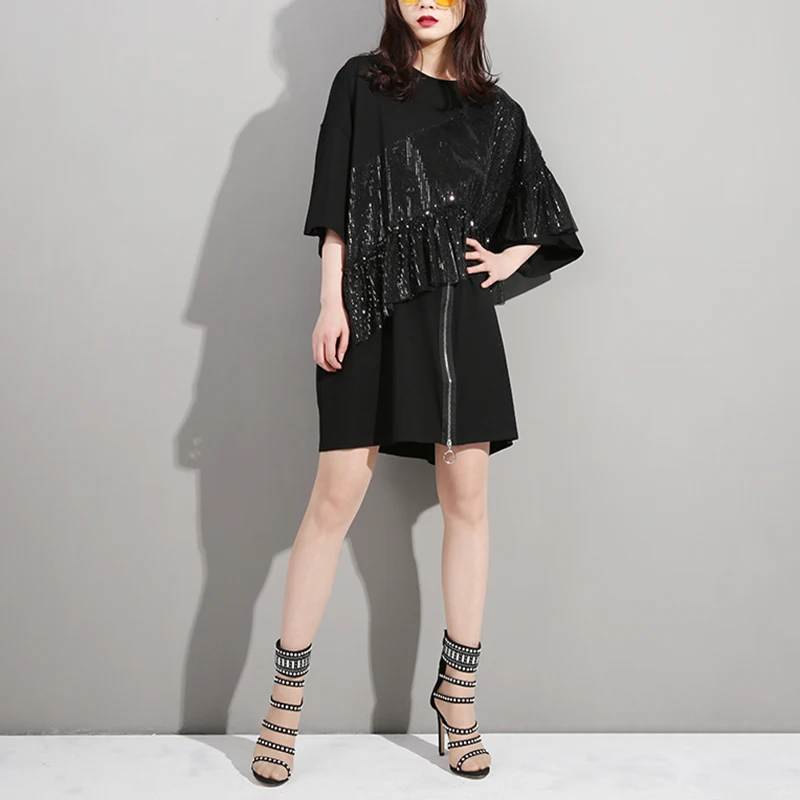 Пол: Женский Материал: хлопок, полиэстер Стиль: Повседневный силуэт: свободный тип узора: однотонный Длина рукава (см): три четверти Украшение: без платья длина: до середины икры Стиль рукава: обычная Талия: натуральный Вырез: круглый вырез Сезон: лето Номер модели: 69 название бренда: EAM Номер изделия: JR76300 Цвет: белый, черный