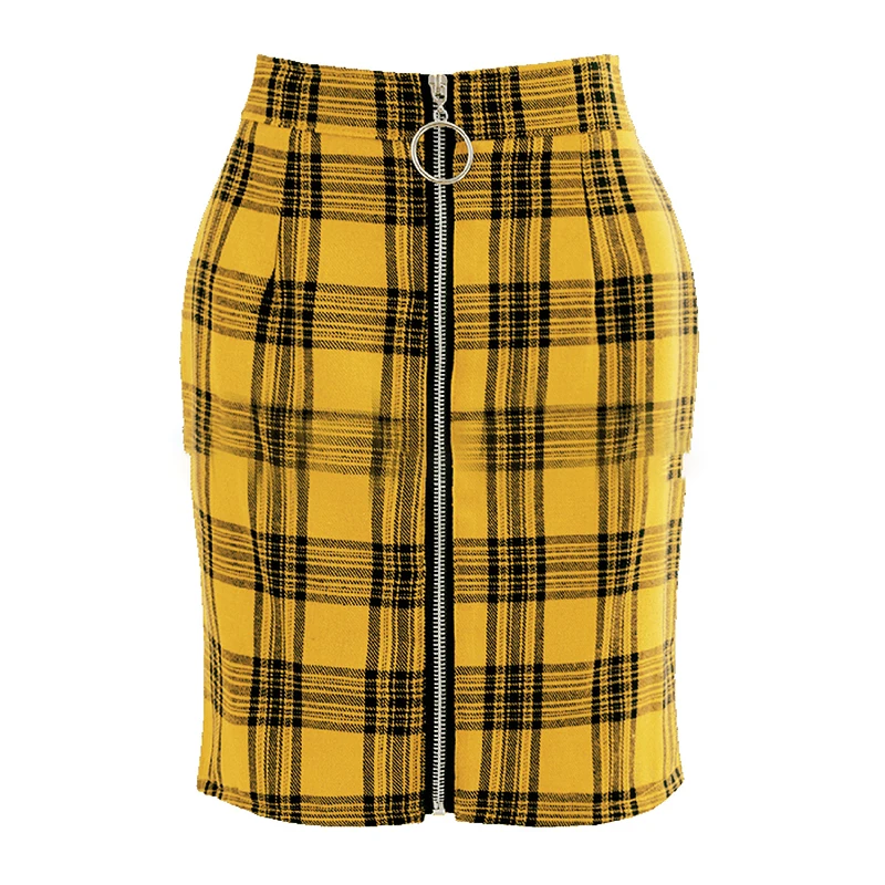MIYU/женская летняя коллекция 2019 года, 2 цвета, модная пикантная клетчатая юбка в стиле пэчворк с высокой талией, облегающая мини-юбка на молнии
