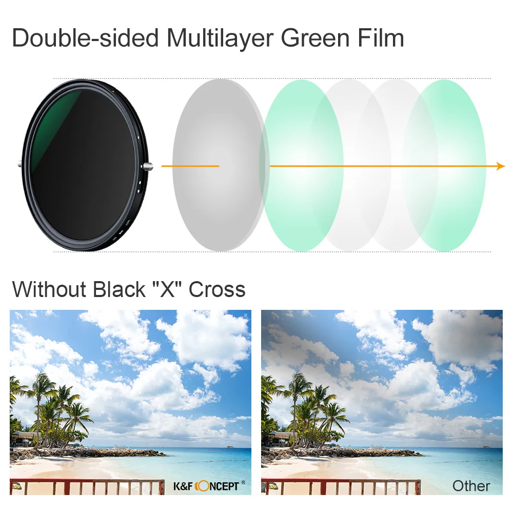 【Нет черного "X" Креста на изображении 】:Фильтр имеет технологию самоблокировки рамы, при вращении до минимального конца или остановки ND32 рамка автоматически блокируется, избегайте тени черного «X» Креста и дает вам хороший эффект съемки.