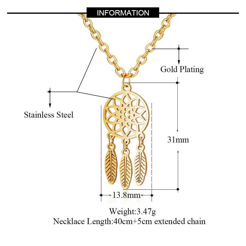 Модное милое золотое ожерелье из нержавеющей стали кулон в виде Ловца снов Ожерелье Мандала Лотос Йога перо Шарм Ювелирные изделия Подарки