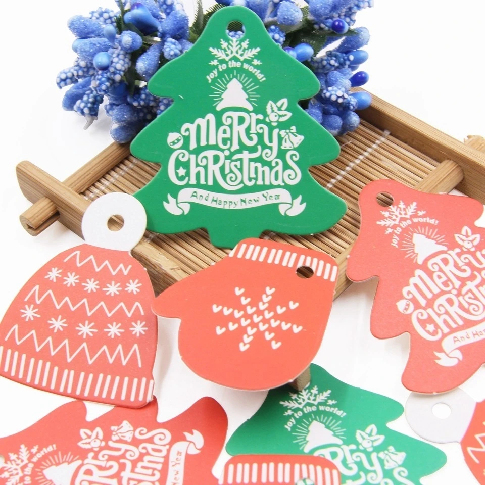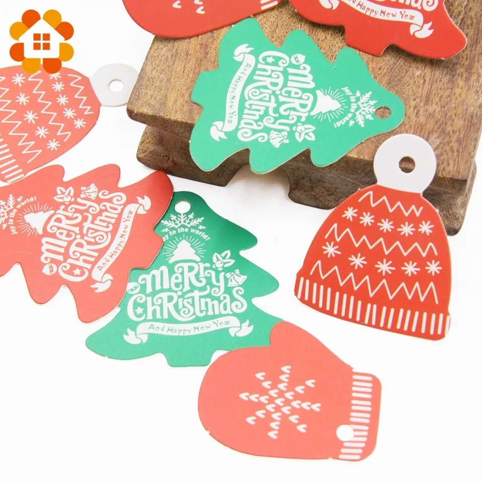 80 шт./лот Творческий красный зеленый Рождественская елка шляпа теги Подарочный пакет для конфет декоративная коробка тег Сделай Сам бумага для рукоделия вечерние поставки