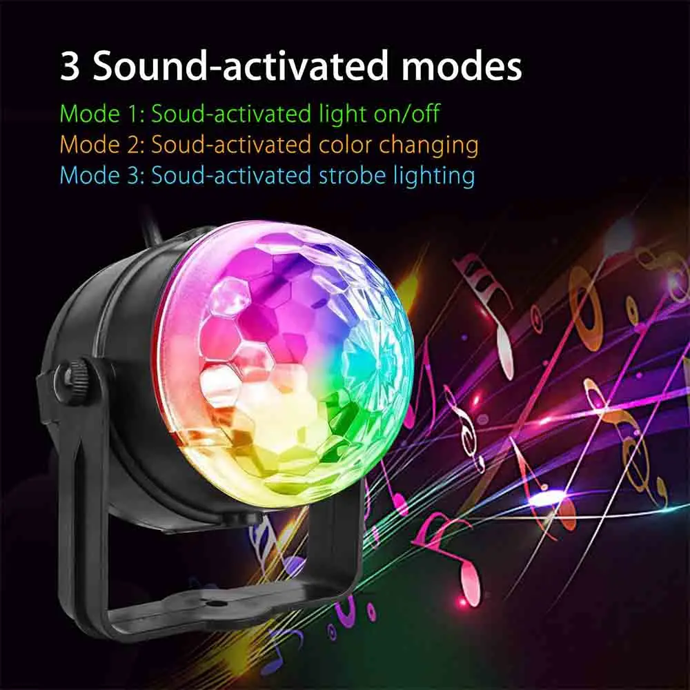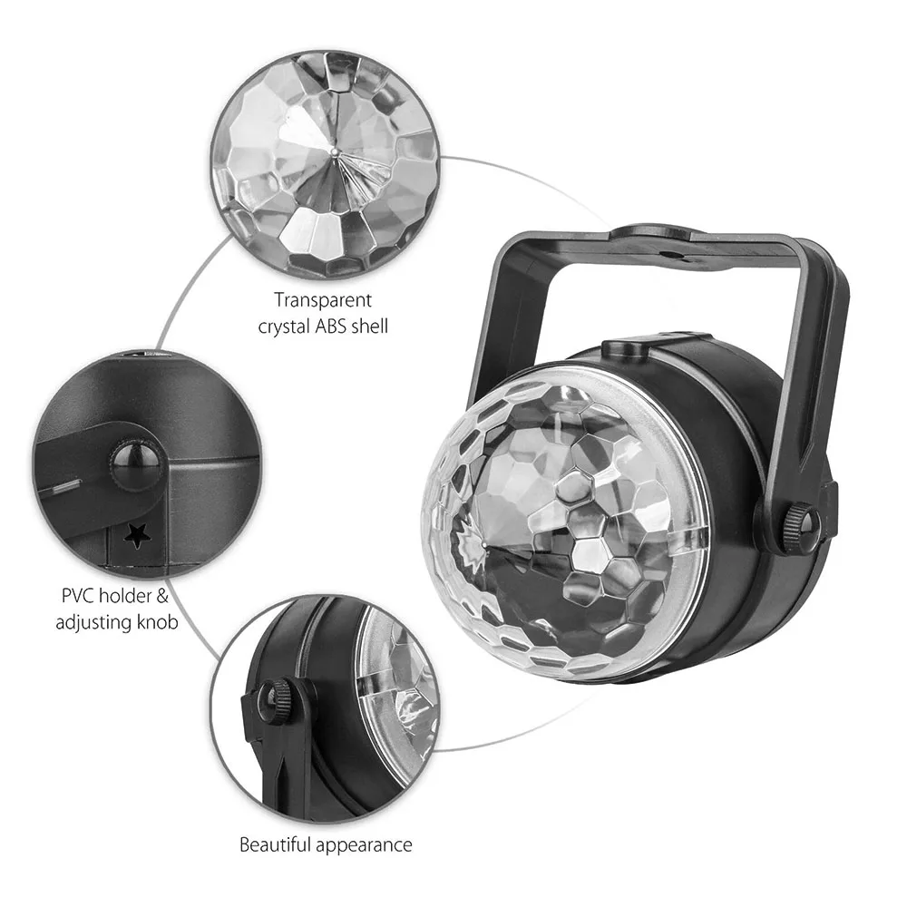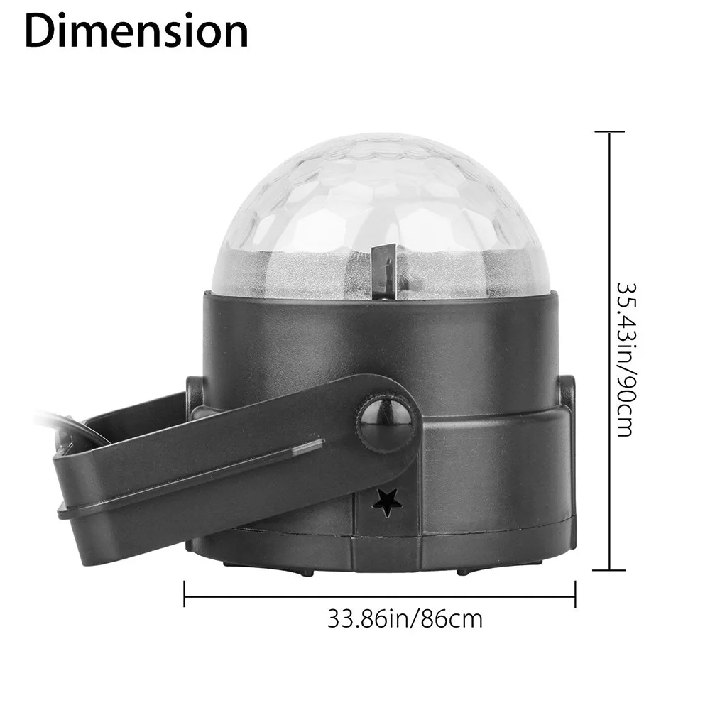 Режим управления: Голосовая активация, стробоскоп, автоматическое освещение, регулируемая скорость, reotating свет