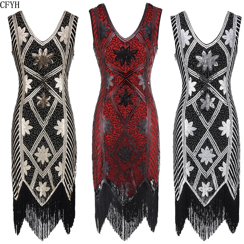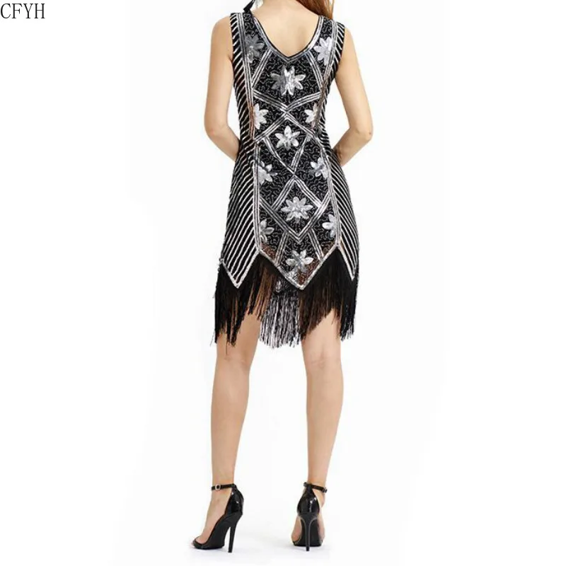 Женское вечернее платье большого размера 4XL Great Gatsby, пикантное платье с v-образным вырезом и вышивкой, расшитое блестками, с кисточками на подоле, модель 1920-хUS $18,99 /