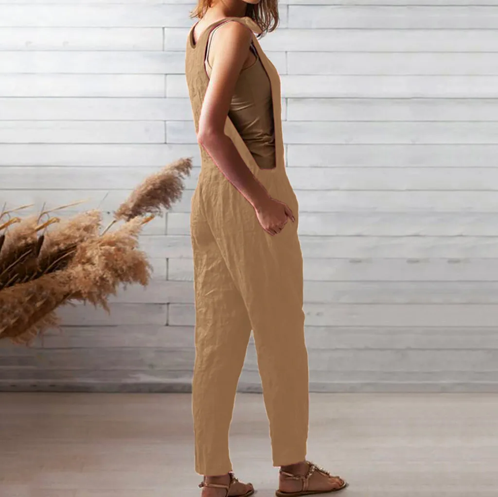Женский комбинезон без рукавов из хлопка и льна, длинный комбинезон, вечерние комбинезоны