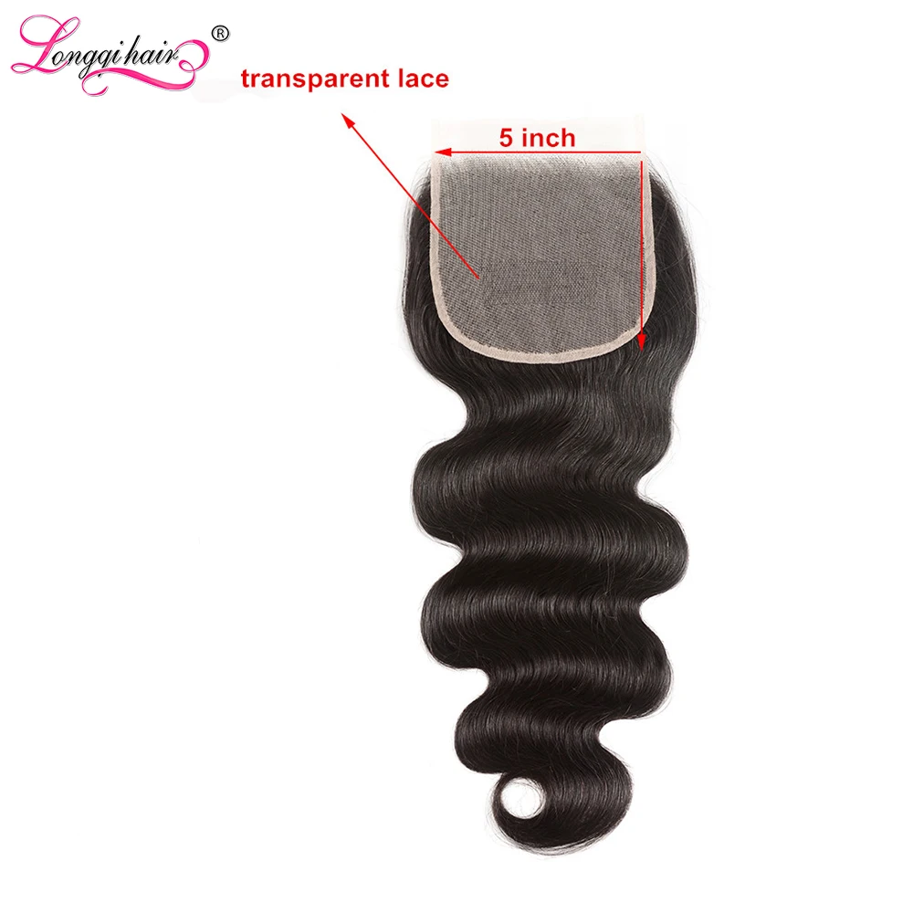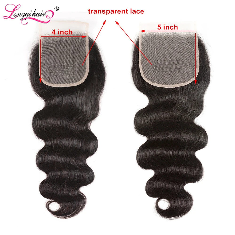 Longqi волосы бразильские волнистые прозрачные кружева закрытие Remy человеческие волосы закрытие швейцарское кружево 4x4 5x5 Кружева Закрытие 10-18 дюймов