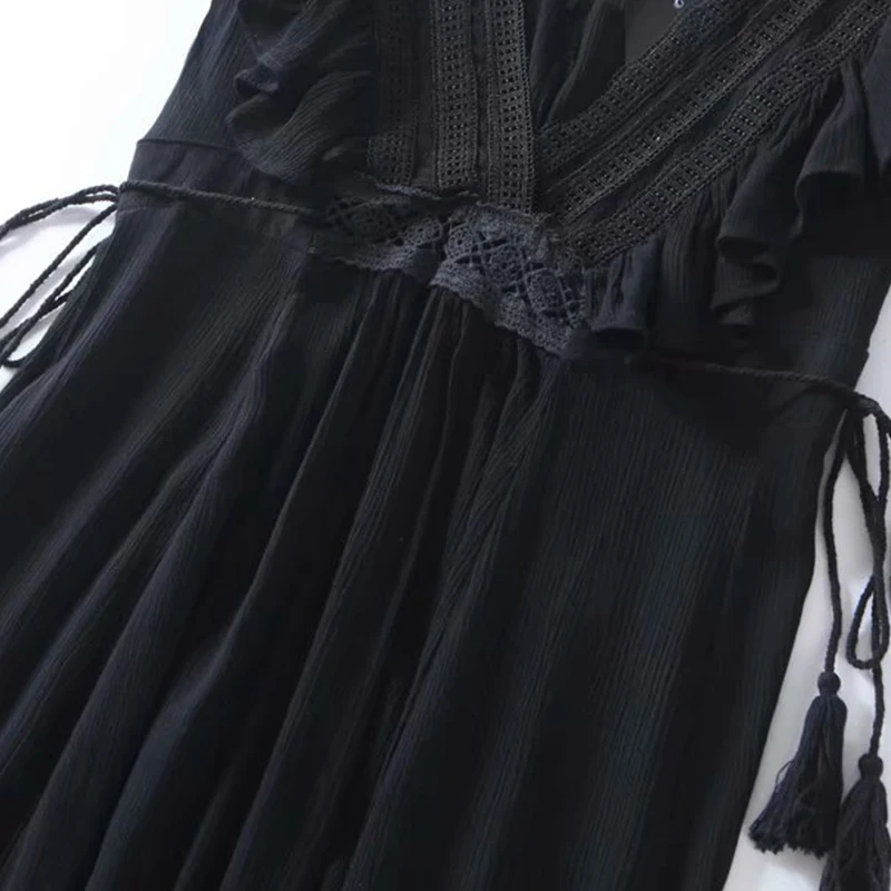 Платье женское лето 2019 уличное сексуальное черное кружевное платье для отдыха с v-образным вырезом богемное пляжное праздничное торжественное платье