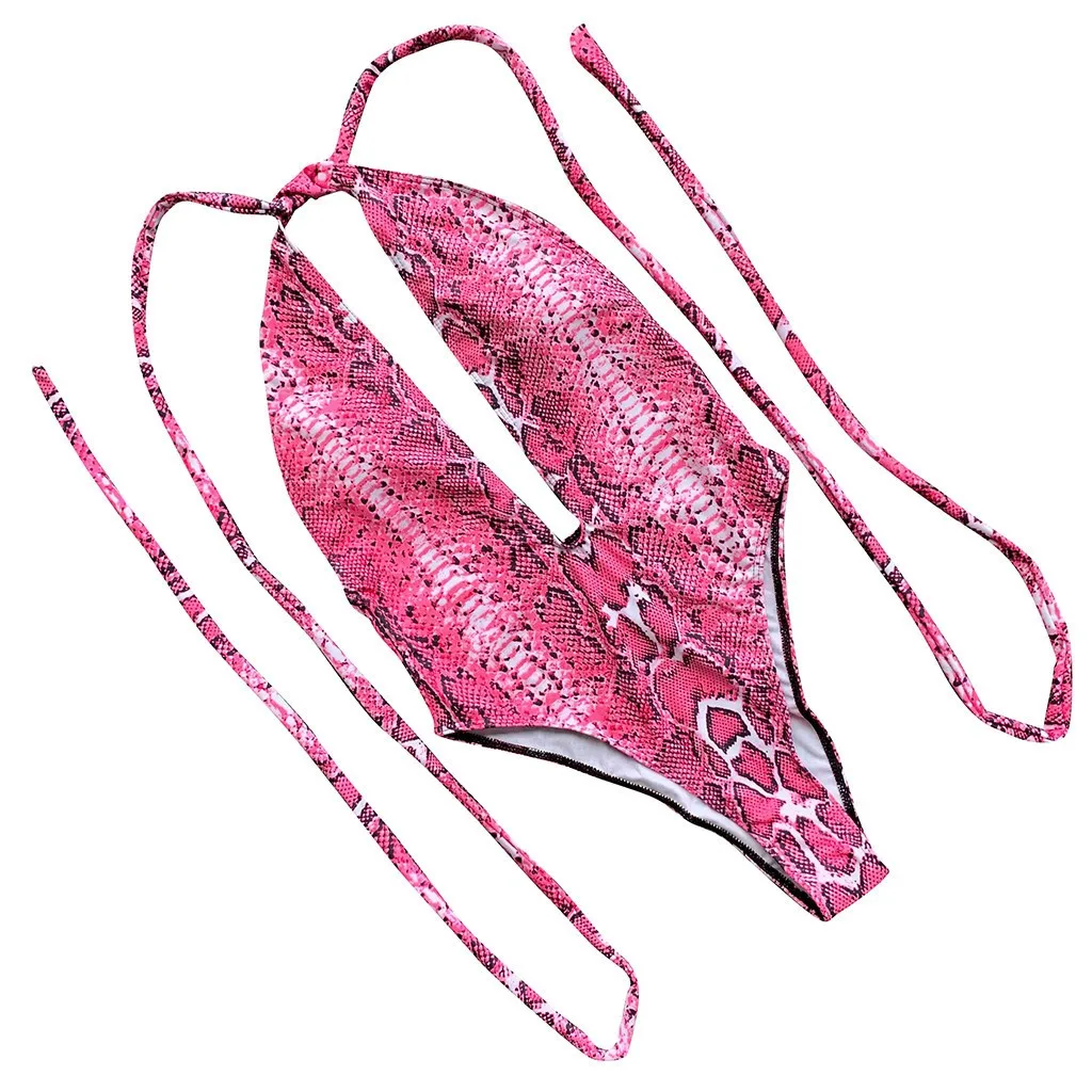 Женский Цельный купальник с принтом змеи, Бандажное бикини с открытой спиной, пляжная одежда,