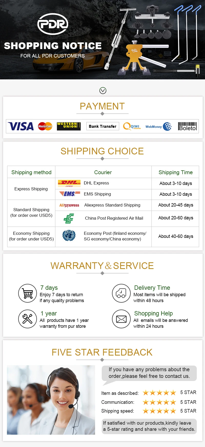 О: Не волнуйтесь, если вы нажали его случайно. Ваша посылка будет отправлена как можно скорее. Просто следуйте номеру отслеживания для обновления. 5-звездочный отзыв очень ценно для нас, при получении вашей посылки.