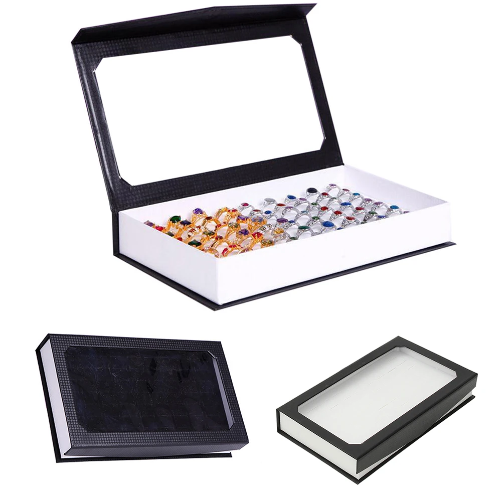Модный прямоугольник ювелирных изделий дисплей лоток держатель 72 кольца с отверстиями чехол для хранения коробка