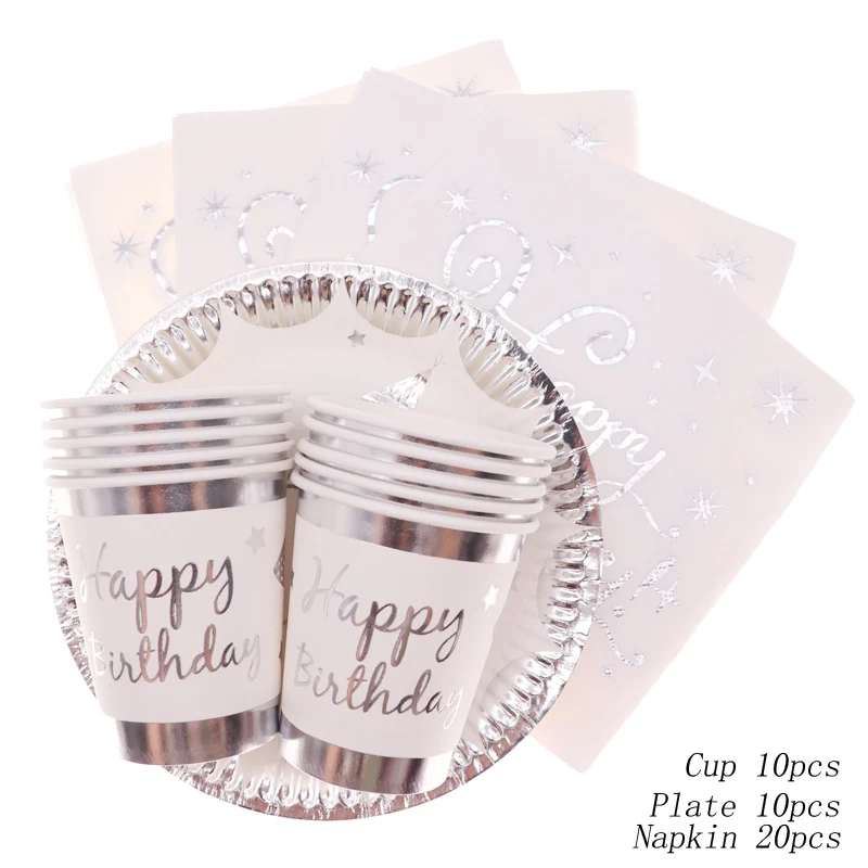 Bronzing silver disposable tableware set silver point paper cup cup grass party wedding wedding carnival tableware supplies