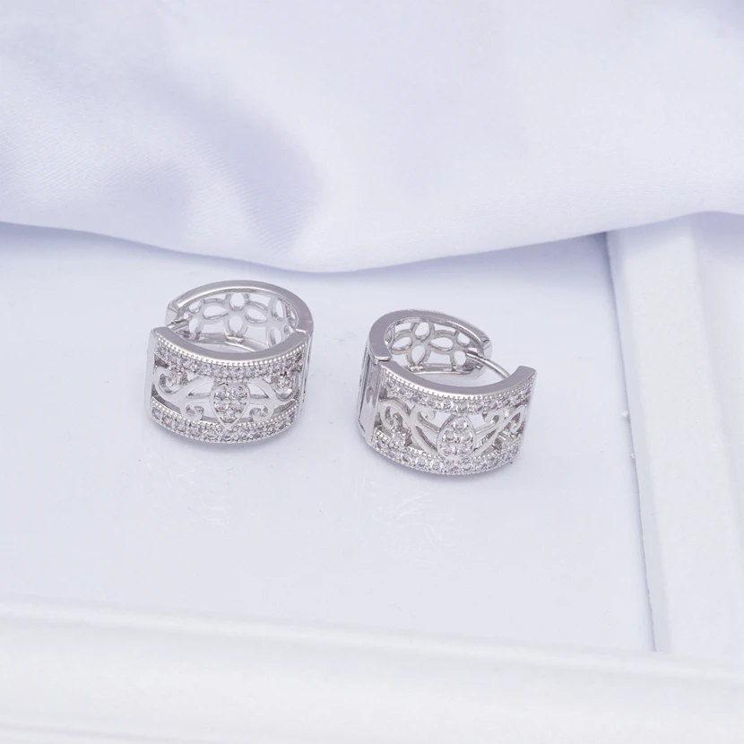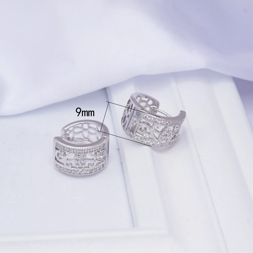 ESSFF Капля воды цветок серьги-кольца для женщин белое золото заполнены AAA кубического циркония винтажные модные ювелирные изделия подарок Прямая поставка
