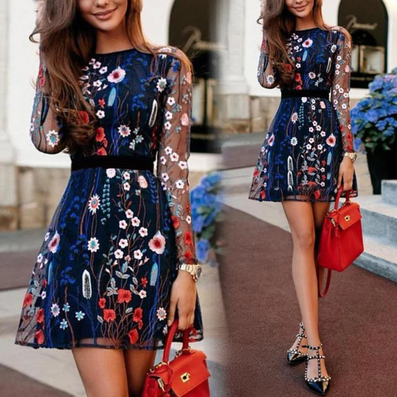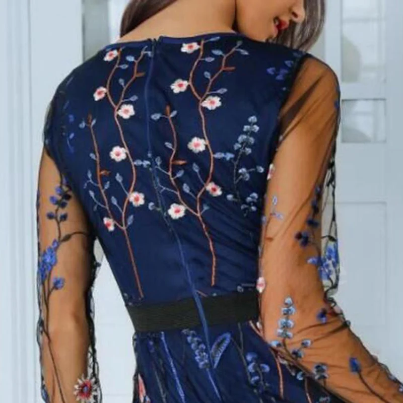 * Описание товара: винтажное женское вечернее открытое прозрачное Сетчатое платье с цветочной вышивкой