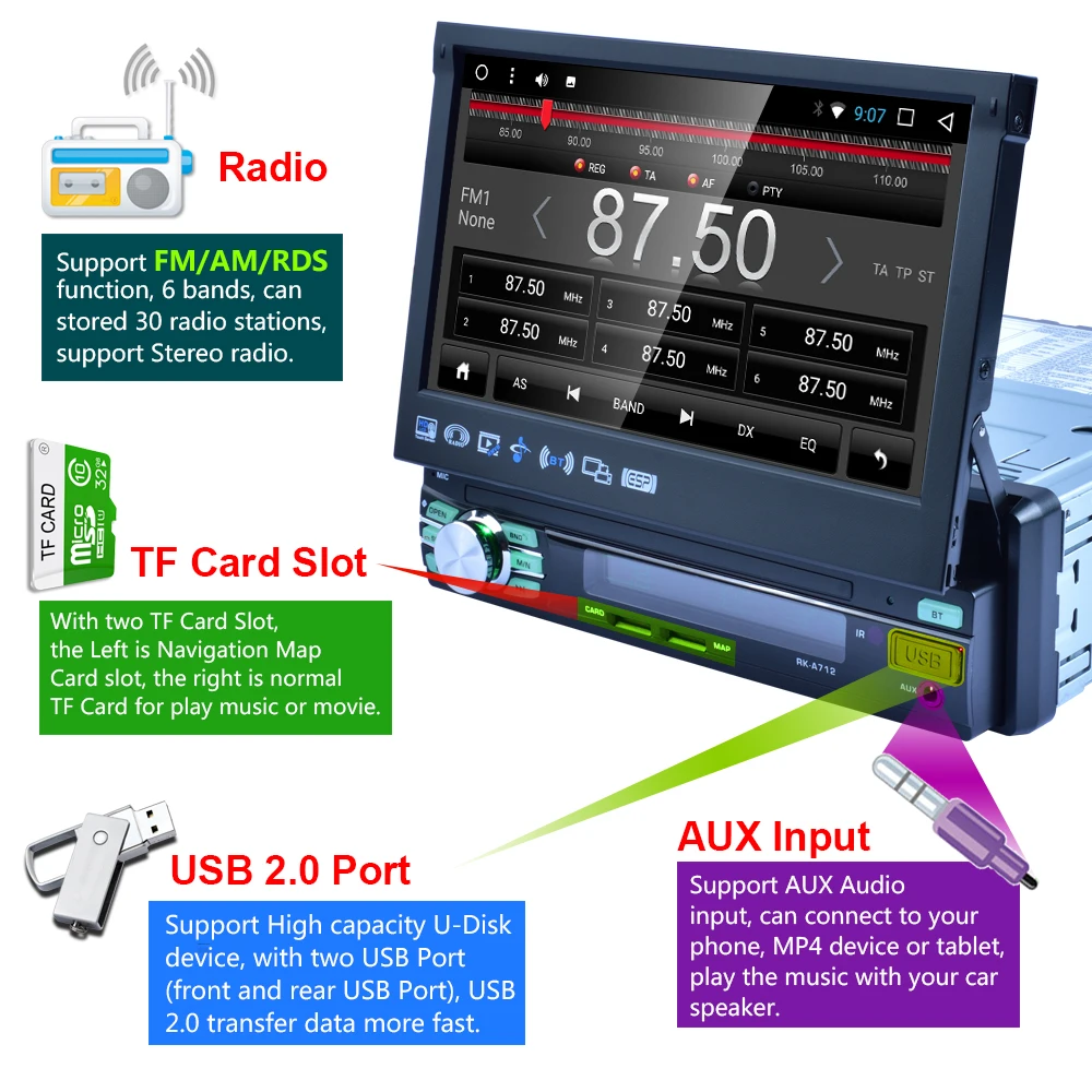 1din автомобильный Радио плеер Авто Выдвижной Экран Android wifi Автомобильный мультимедийный плеер сенсорный экран Авторадио автомобильный DVD плеер GPS навигация FM AM USB