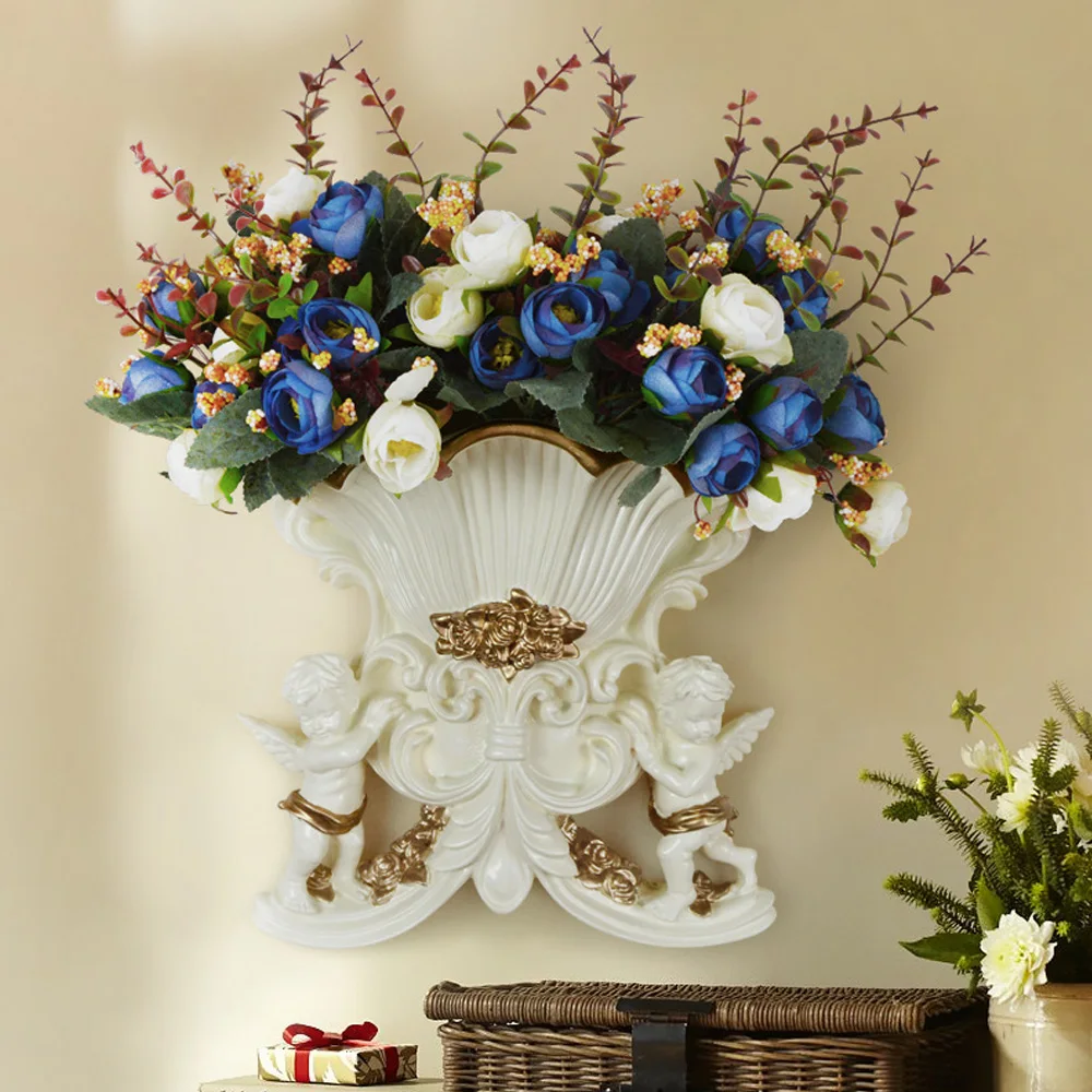 Европейский ангел настенная подвесная ваза креативное украшение для дома европейские древние украшения для фрески настенные технологии цветочный магазин свадебное украшение Настенная Наклейка