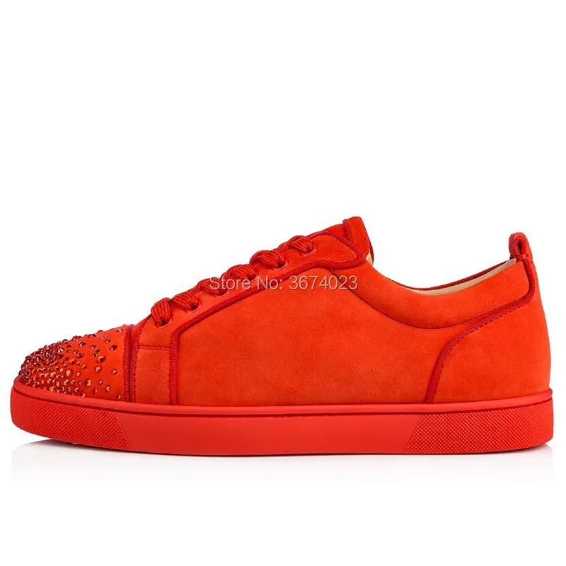 Название товара:Qianruiti/модные мужские красные замшевые кроссовки с кристаллами на плоской подошве; Низкие кроссовки на шнуровке; Мужская обувь на резиновой подошве