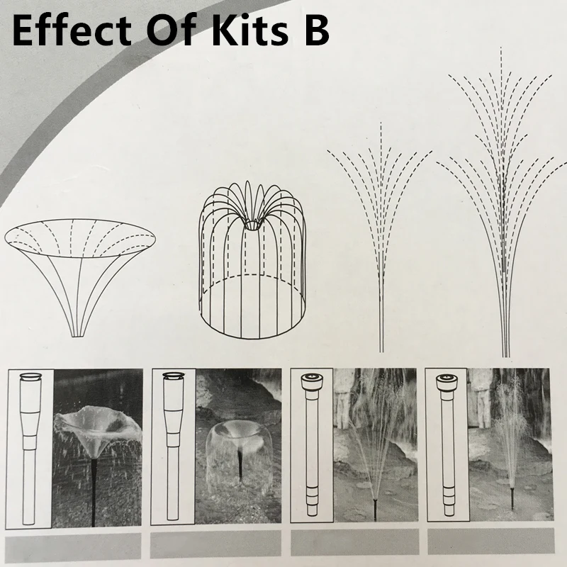 Пластиковые насадки для сада и прудаИспользуется для аквариума, аквариума, садового пруда, бассейна и т. д.Характеристика-Цвет: черный-Материал: пластик-Создает различные эффекты фонтана, удлинительные трубки для увеличения высоты фонтана.-Изготовлен из качественного пластика, прочный и долговечный.-Различные головки фонтана, вы можете выбрать головку фонтана в соответствии с формой воды.-Используется для аквариума, аквариума, садового пруда, бассейна и т. д.Комплект A: 3 насадки для фонтанов, 6 разъемов;Комплект B: 4 насадки для фонтанов, 4 разъема.