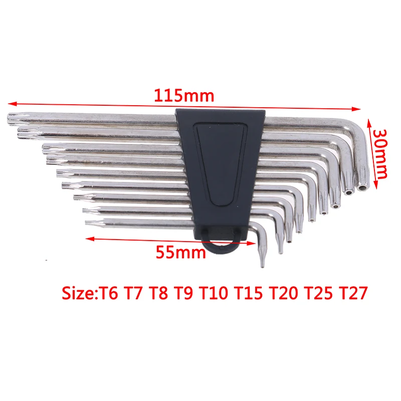 Размеры Torx включают: T6,T7,T8,T9,T10,T15,T20,T25,T27