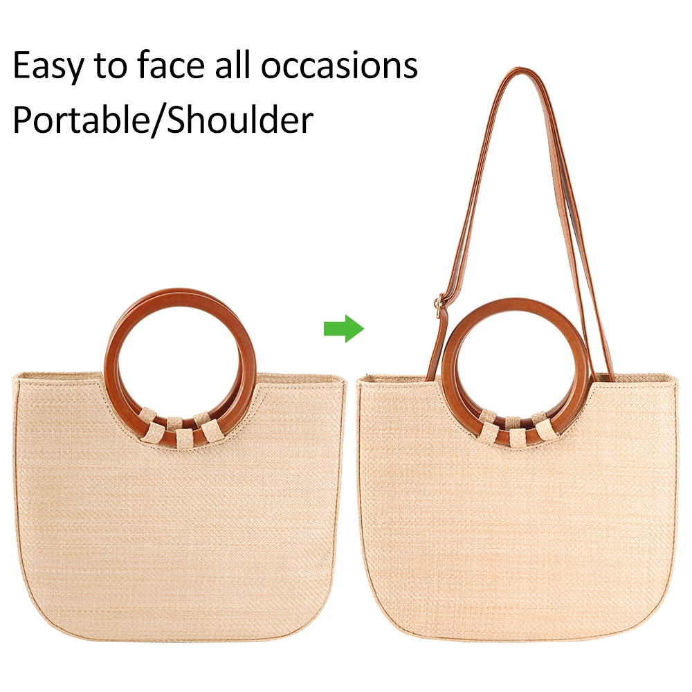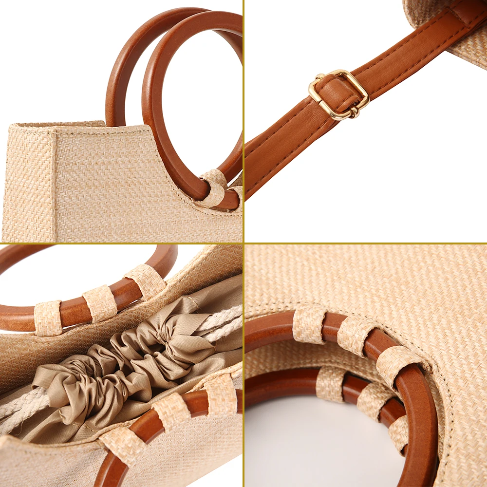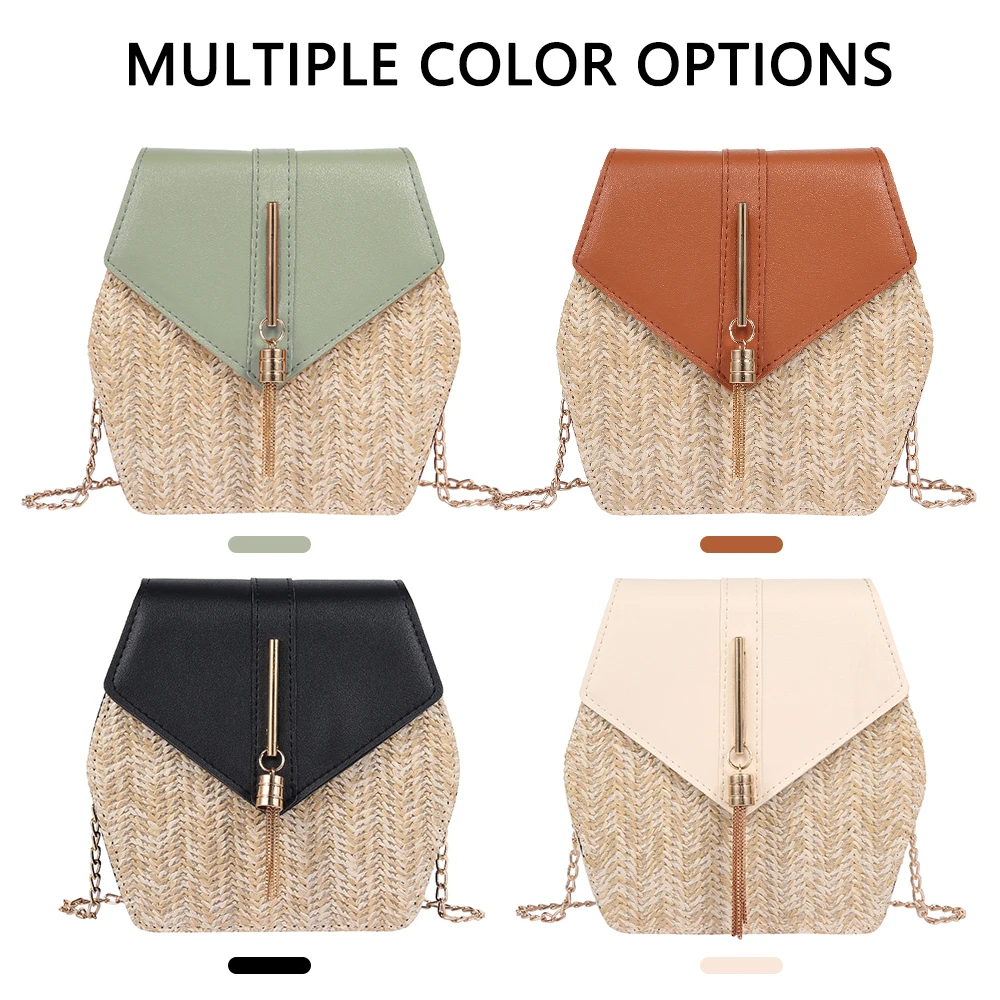Женская соломенная сумка в стиле шестиугольник + Кожаная сумка из ротанга, ручная работа, плетеная пляжная сумка на плечо в богемном стиле, Новая мода
