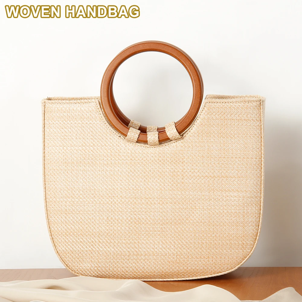 Ручная работа, плетеная круглая сумка из ротанга, винтажная Ретро соломенная веревка, вязаная сумка-мессенджер, Женская свежая бумажная сумка, летняя пляжная сумка-тоут