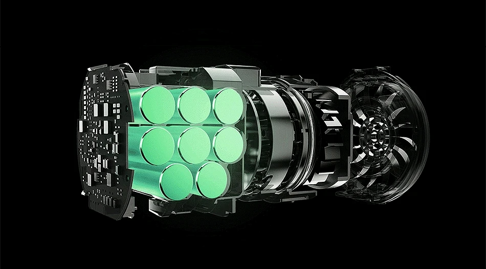 Встроенный литий-ионный аккумулятор 2500 мАч, заряжает 2,5 часов и работает 50-60 минут.
