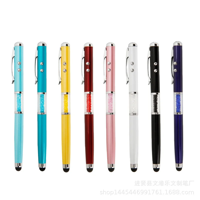Материал ручки: металл + кристалл Длина ручки 13,9 см наружный диаметр 1,0 см Вес 17 г Функция: Шариковая ручка + сенсорный экран + светодиод + лазер
