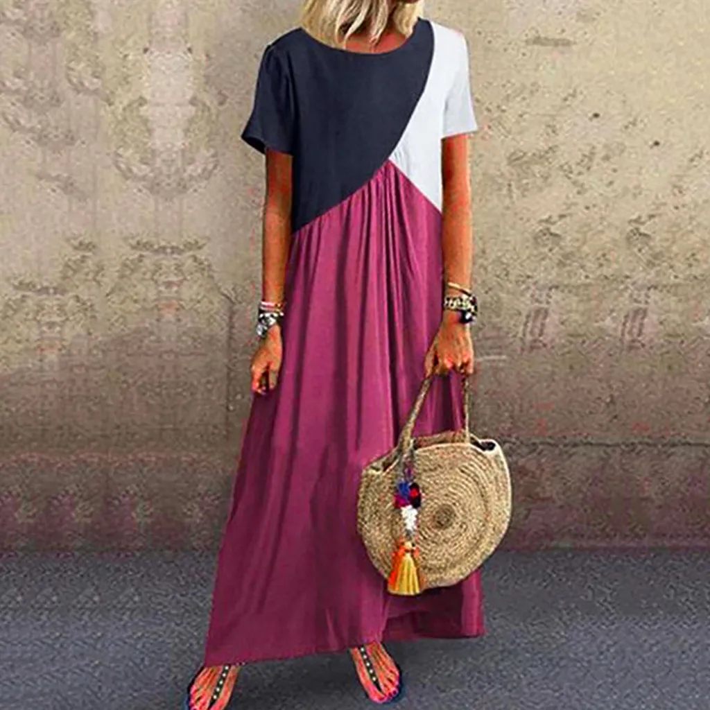 Женское летнее Повседневное платье с коротким рукавом и круглым вырезом, Свободное длинное платье