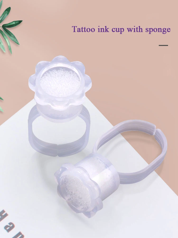 Disposable Tattoo Ink Ring Cups with Sponge Microblading Accessories Micro Pigment Cups Ink Holder Tools Permanent Makeup Supply