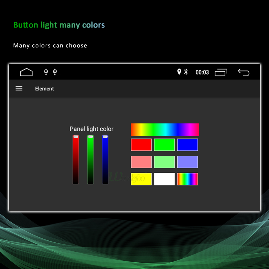 У вас есть много цветов на радио кнопки света. Вы можете выбрать понравившийся цвет. Вы также можете выбрать функцию «цветной светильник», она покажет семь цветов в свою очередь.