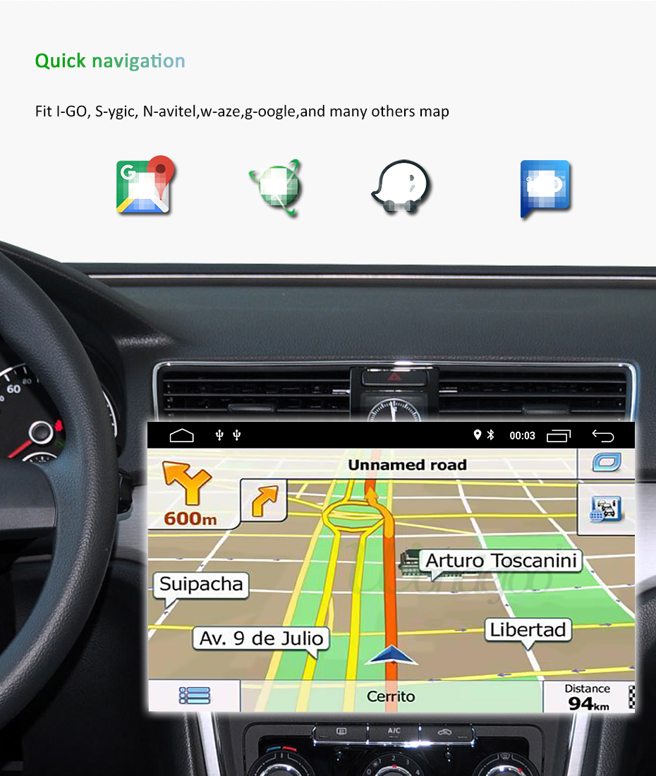 Это радио может устанавливать все типы карт, I-GO,N-avitel, W-aze, s-ygic... и т. Д. Вы можете установить любую карту на радио по вашему желанию. И он также поддерживает google map, вы можете установить приложение google map и связать сеть, затем вы можете использовать его.