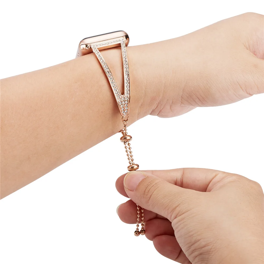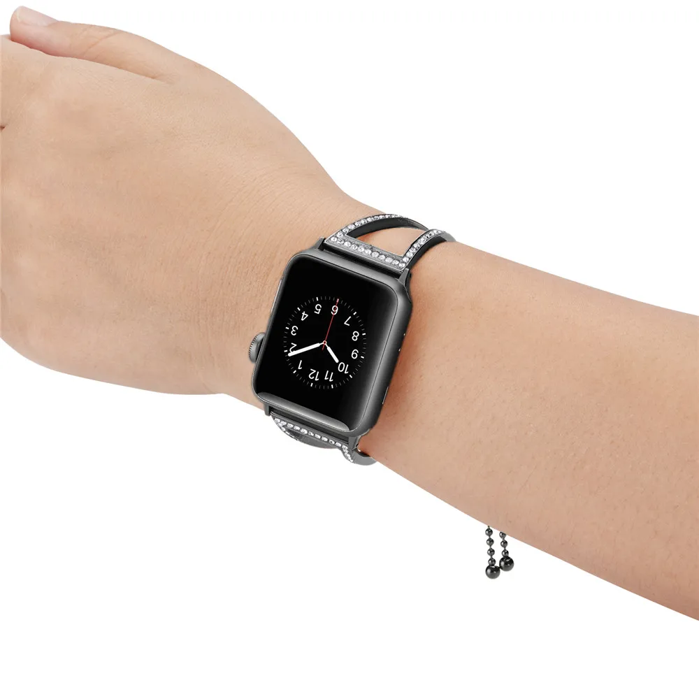 Новый дизайн модные женские туфли обувь для девочек со стразами Нержавеющая сталь браслет ремешок для наручных часов Apple Watch 38/42/40/44 мм серии 5 4 3 2 1