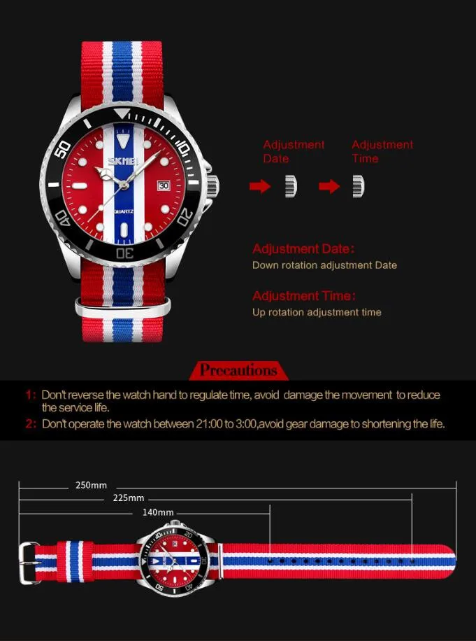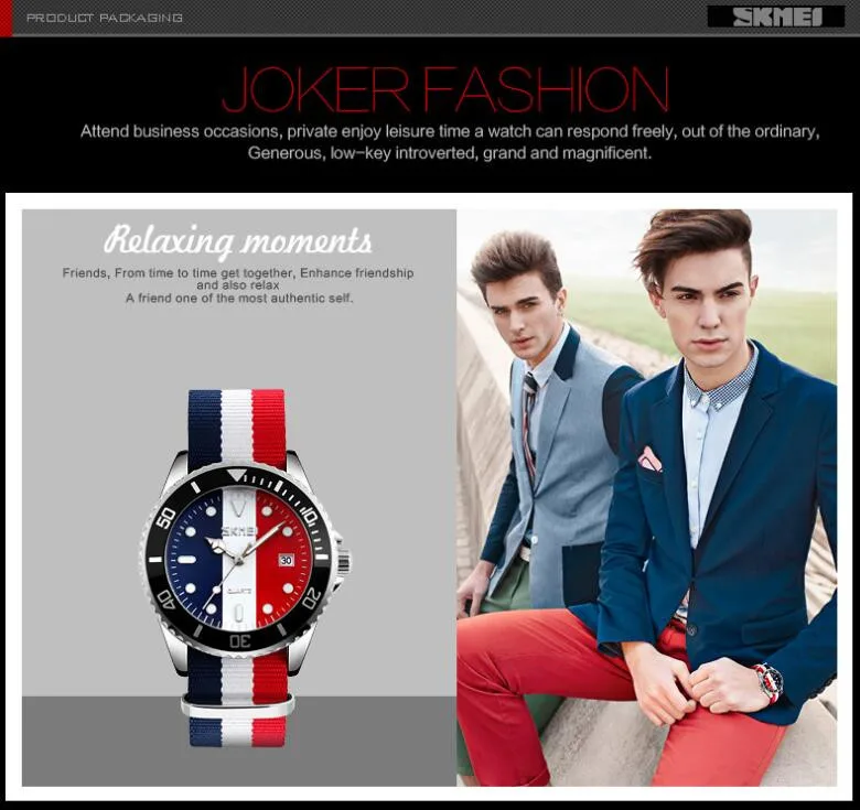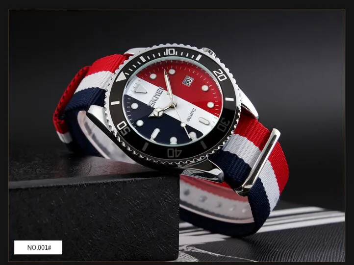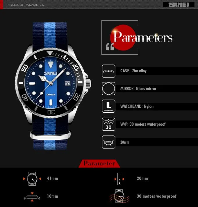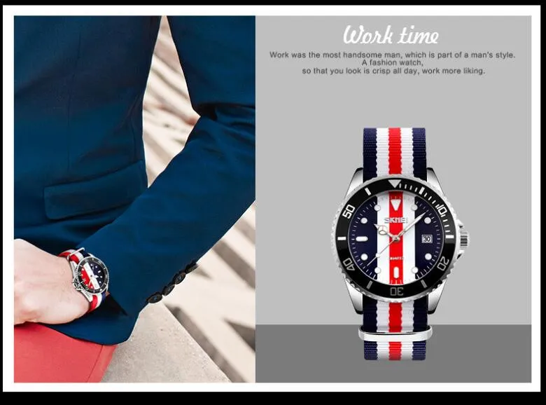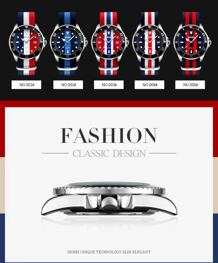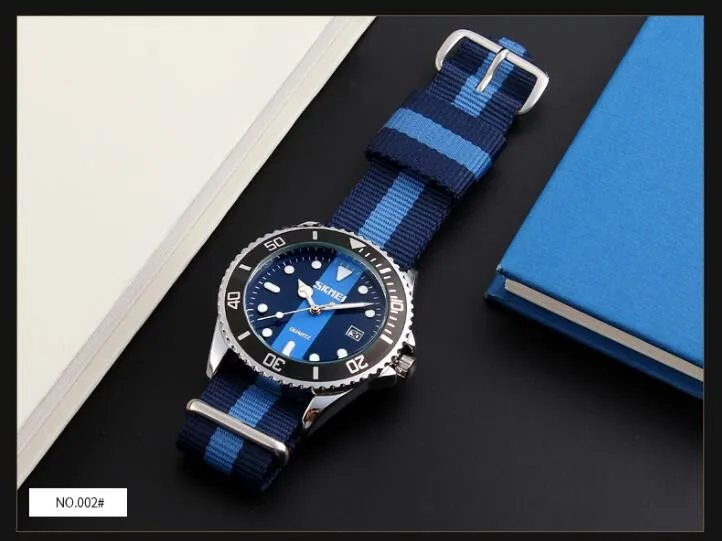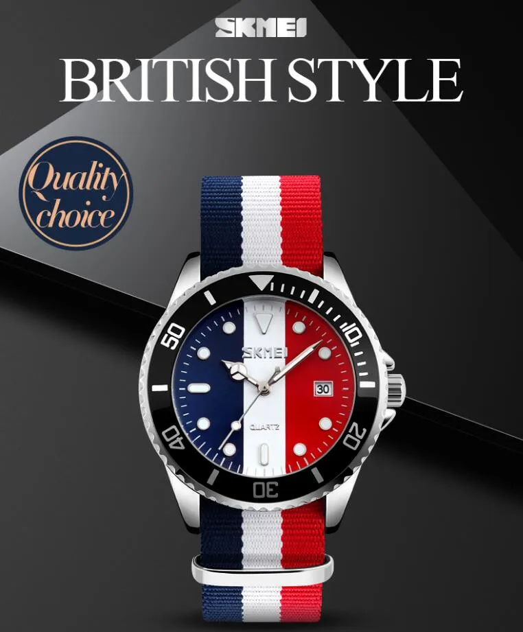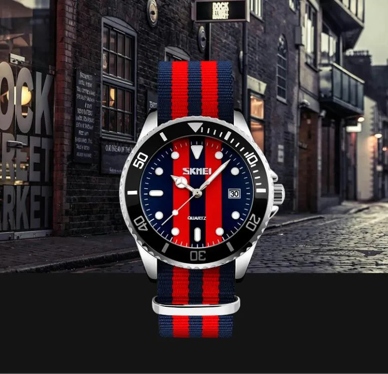SKMEI бренд британский стиль джокер модные часы Мужские кварцевые 30 м водонепроницаемый нейлоновый ремешок Мужские повседневные часы