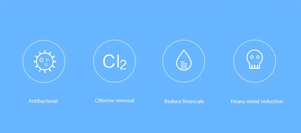 -7-слойная фильтрации. Эффективно уменьшает хлор, известковый налет и тяжелый металл в воде.