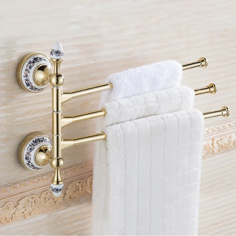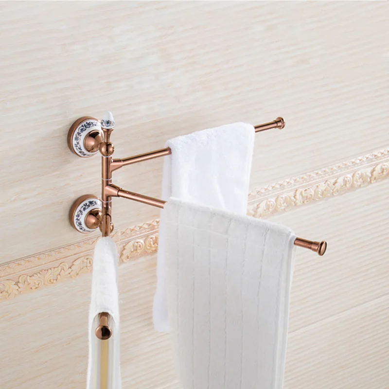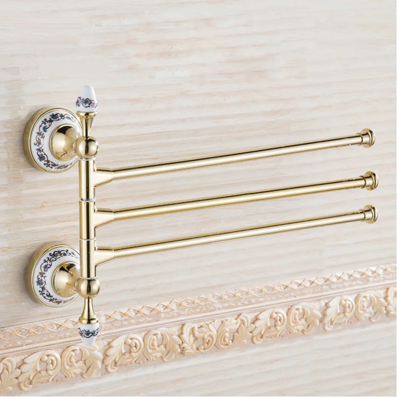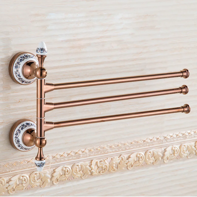 3 вращающихся стержня для полотенец, отделка из розового золота, латунная стойка для полотенец для ванной комнаты, держатель для полотенец, Золотая вешалка для полотенец, аксессуары для ванной комнаты