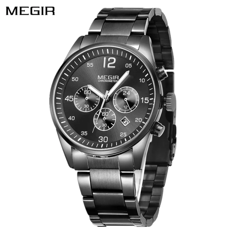 MEGIR мужские часы с хронографом, лучший бренд, роскошные золотые мужские часы, Модные Военные Спортивные часы, мужские стальные часы