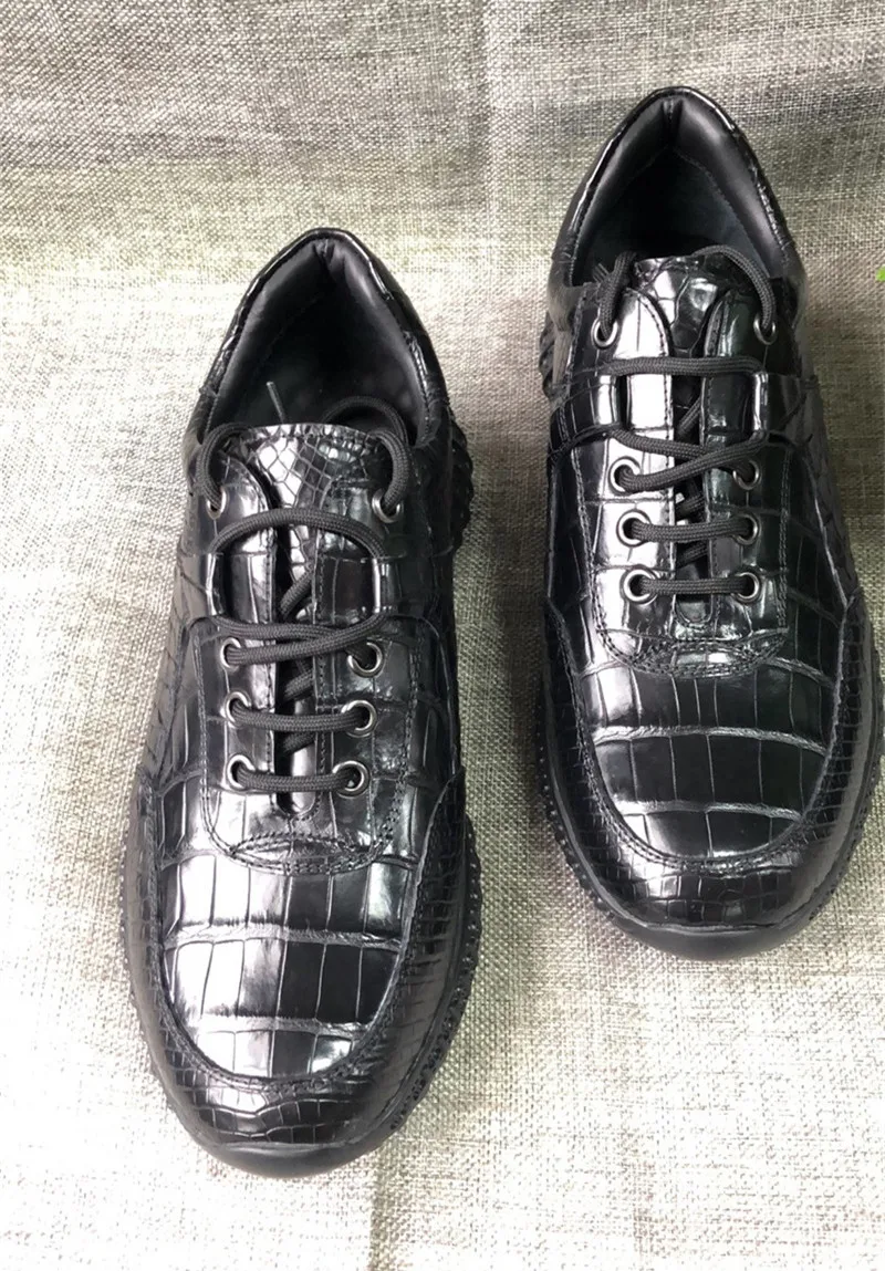 Оригинальные мужские повседневные кроссовки из крокодиловой кожи с мягкой резиновой подошвой; Экзотические мужские туфли на плоской подошве из натуральной кожи аллигатора
