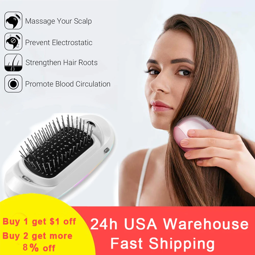 2,0 модная расческа для волос, портативная электрическая ионная расческа для волос, Вибрирующая Массажная Расческа для кожи головы, двойные отрицательные ионы, Антистатическая расческа