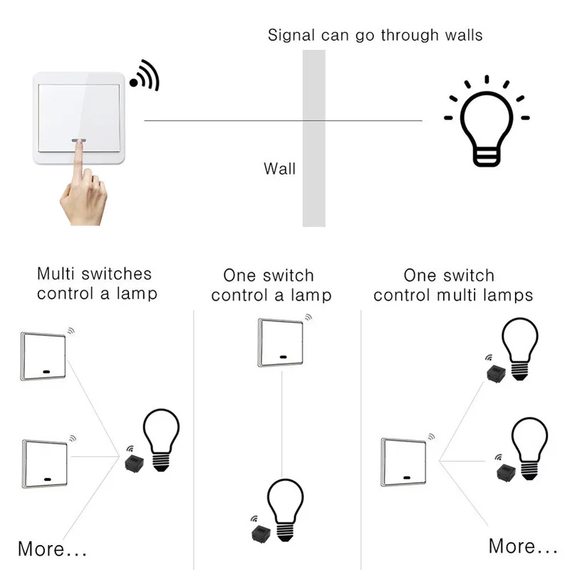 433 МГц Беспроводной RF пульт дистанционного управления выключатель света AC 85 V ~ 250 V 2 Gang для LED/лампы/двери/насоса переключатель не требуется проводка