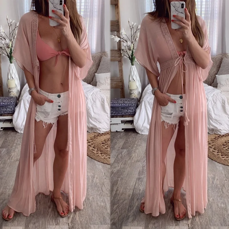 3. -v-образный вырез -Галстуком-бабочкой со шнуровкой -Регулируемая посадка на талии; -Со скидкой длинное кимоно, кардиган -Пляжная накидка