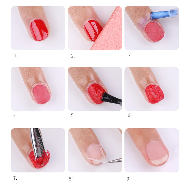 Характеристика: Вместо того, чтобы использовать разгрузочную воду, не полируйте на блестящей стороне ногтя. После нанесения этого волшебного разгрузочного клея его можно удалить непосредственно через 1-3 минуты. Метод: 1. Начало подготовки 2. Отшлифовать уплотнение с помощью шлифовальных полосок 3. Нанесите средство для удаления ногтей и старайтесь избегать нанесения на окружающую кожу. 4. Оставайтесь на месте в течение 3-5 минут, чтобы полностью сломать лак для ногтей 5. Используйте доспехи строгальный станок или разгрузочное полотенце для очистки остатка 6. Легко удалите лак для ногтей, не повредите руку