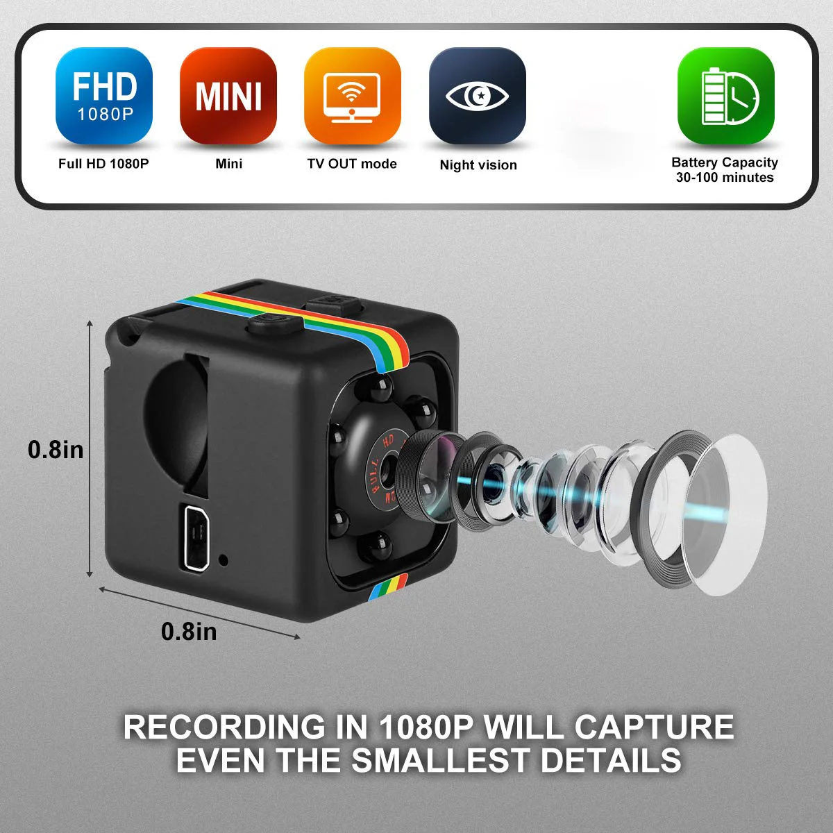 Особенности: Системные требования: Mac OS x 10.3.6 выше, Win 7,Windows 2000 / XP / Vista Максимальная поддержка внешней карты: TF 32G (не входит в комплект) Требования к классу: класс 10 или выше Тип батареи: Встроенный Способ зарядки: USB зарядка ПК Время работы: около 30-100 минут при 1080P 30 кадров в секунду Камера пикселей: 12MP Формат декодирования: MJPG Формат видео: AVI Разрешение видео: 1080P (1920x1080),720P (1280x720) Частота кадров видео: 30 кадров в секунду Формат изображения: JPG Разрешение изображения: 12 м (4032x3024) Аудиосистема: встроенный микрофон/спикер (AAC) Функция USB: usb-диск Тип интерфейса: Mini USB Ночная версия: Да Посылка в комплект входит: 1 мини-камера DVR, 1 х USB/ТВ из кабель 2 в 1, 1 х кронштейн 1 х клип Руководство пользователя (1 шт.) Розничная коробка-1 шт.