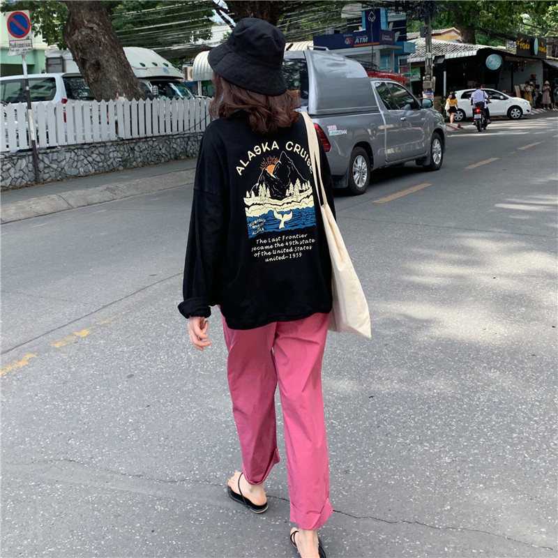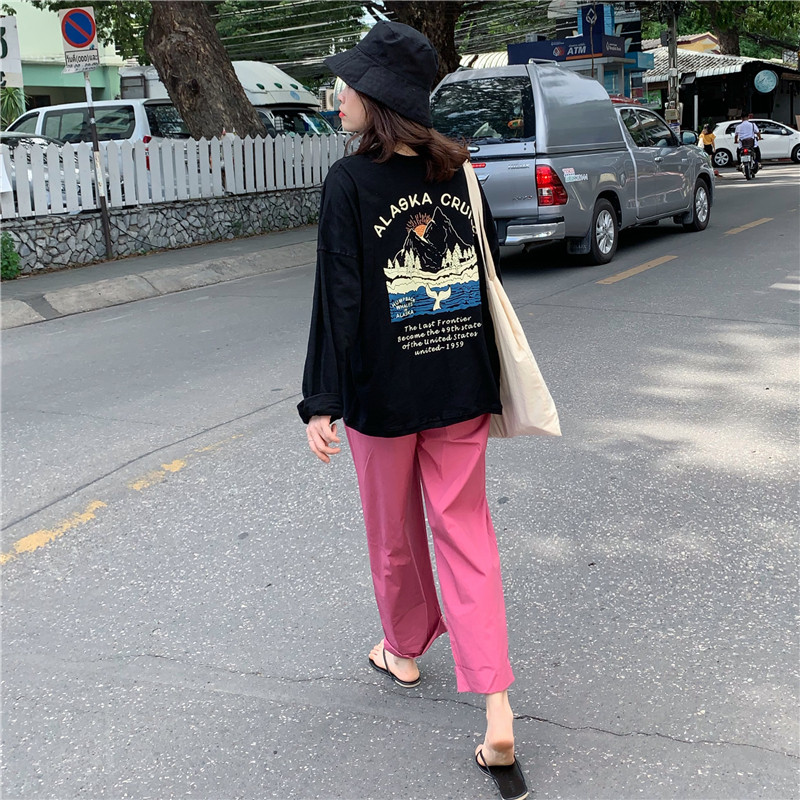2019 корейский стиль, летняя футболка с буквенным принтом и длинным рукавом, Солнцезащитная женская футболка