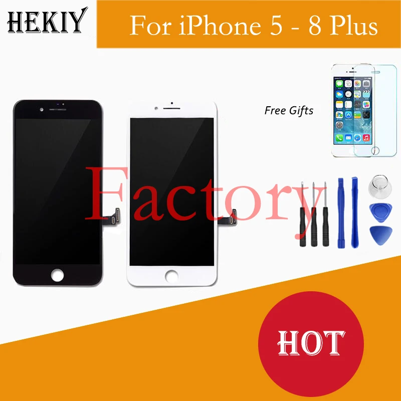 Hekiy AAA + + + ЖК-дисплей для iPhone 6 7 8 6S Plus сенсорный экран Замена для iPhone 5 5S SE без битых пикселей + закаленное стекло + Инструменты