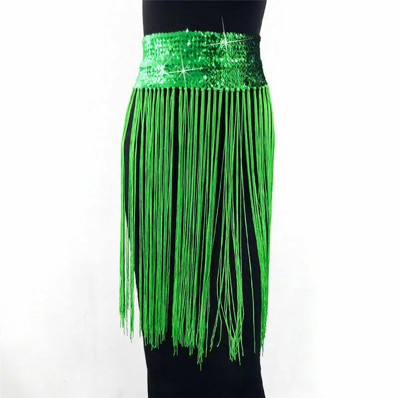 Новая модная женская танцевальная юбка Цвет: черный, желтый, зеленый, розовый, красный, небесно-голубой, серебристый, королевский синий Материал: блестки и полиэстер Размер: один размер Эластичная резинка на талии: 64-99 см Вес нетто: 0,17 кг (прибл.) 1 дюйм = 2,54 смПосылка в комплекте: Женская юбка с блестками и кисточками