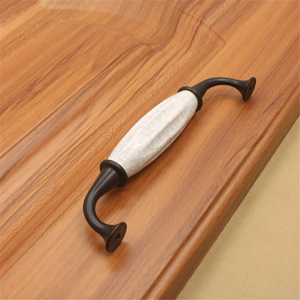 Brand new and high quality. Simple and stylish, luxurious atmosphere, exquisite workmanship, flexible. Material:Zinc alloy+ceramics. Hole Distance : 96mm , Size (LxWxH) :112mm x 19mm x 34 mm ; Hole Distance :128mm ,Size ( LxWxH ):145 mm x 19mm x34 mm. Feature: Durable,useful, beautiful ,easy to install. The draw pull handles can be used for a long time and it is very comfortable for you to hold . These pulls are perfect replacement knobs that will provide the finishing touch to your decorating. Classical design help you create a stylish and complete look for your home decor . Notice: 1.Screw length: 2.5cm or 2.2 cm ,if you need the other length of screws ,please contact with us. 2.Please allow 1-3mm error due to manual measurement.