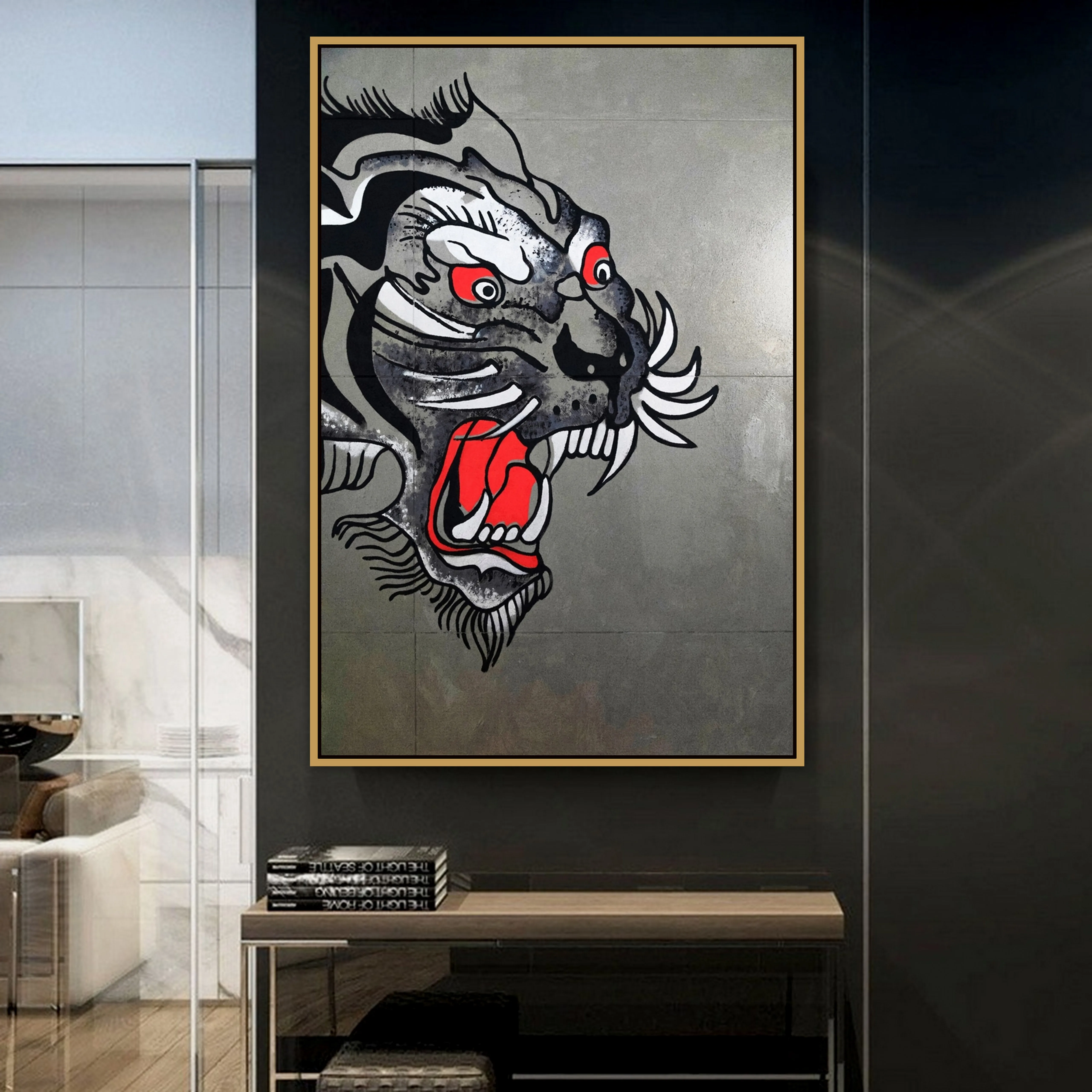 Дизайн:Красный, черный и белый Злой тигрГородское уличное искусство Граффити настенная живопись художника росписи.