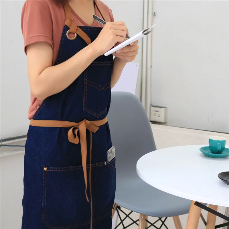 WEEYI женские Для мужчин Пособия по кулинарии Кухня фартук джинсовые фартуки для шеф-повара для официантов и официанток стулья для Кафе BBQ с карманами леди ресторанный фартук
