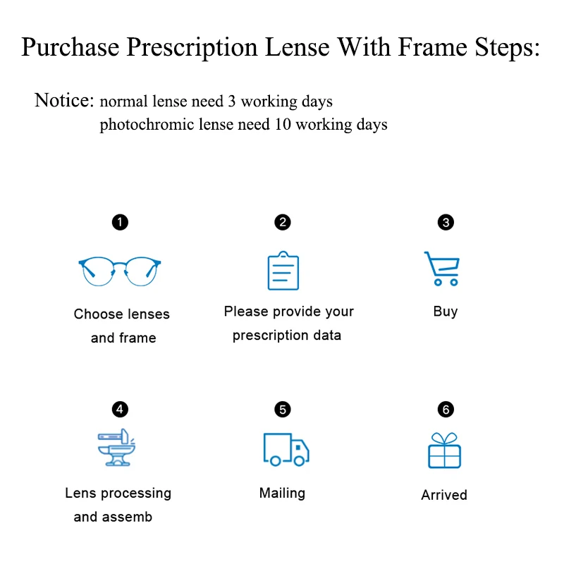 Примечание: линзы по рецепту в одном из следующих диапазонов относятся к индивидуальным объективам, поэтому мы должны сделать линзы специально для вас, и есть дополнительная плата в размере 10 или 20 долларов США. Благодарим за понимание!